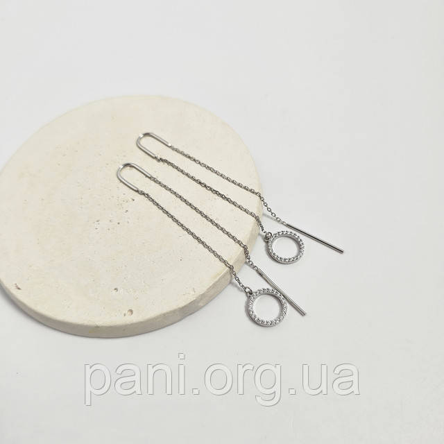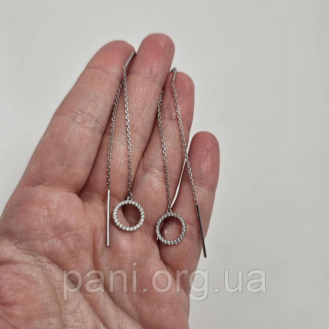 | Сережки протяжки срібні з круглими підвісками білими фіанітами довгі | Сережки протяжки срібні з круглими підвісками білими фіанітами довгі |