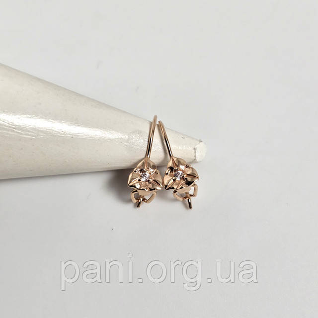 | Сережки золоті листочки з білими фіанітами французька застібка | Сережки золоті листочки з білими фіанітами французька застібка |